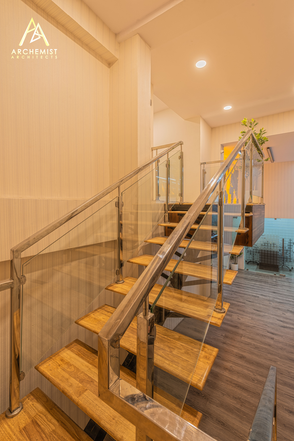 Carefully curated lighting plays a significant role in shaping the ambiance. A blend of warm, ambient lighting and focused task lighting creates a balanced atmosphere—cozy yet professional. Pendant lights above communal areas add a touch of sophistication, while recessed lighting ensures a clutter-free ceiling aesthetic.