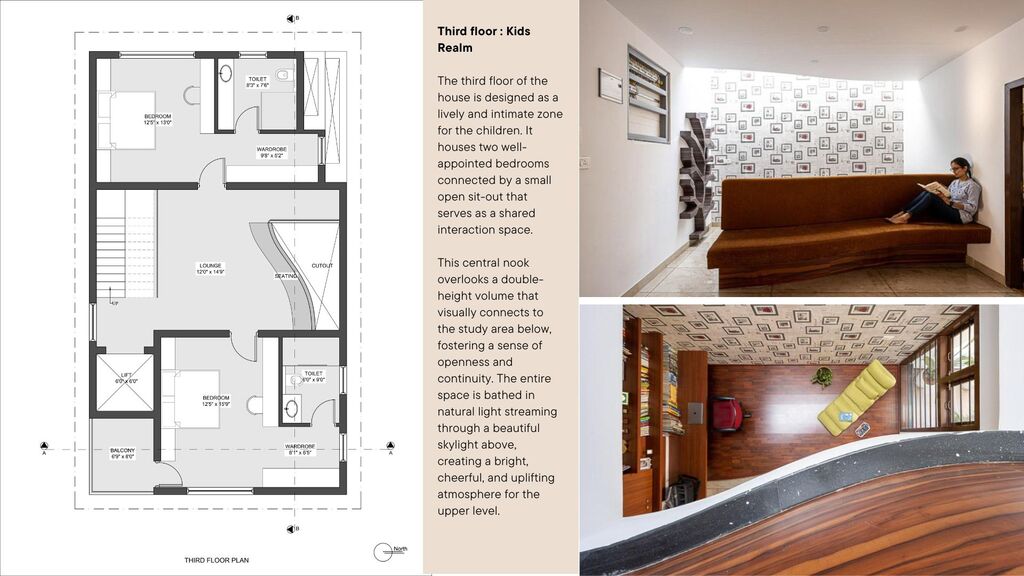 Rather than segregating spaces, the layout revolves around a central double-height volume, allowing visual and verbal connectivity across levels. Family members can interact easily, fostering a sense of togetherness and fluidity.
